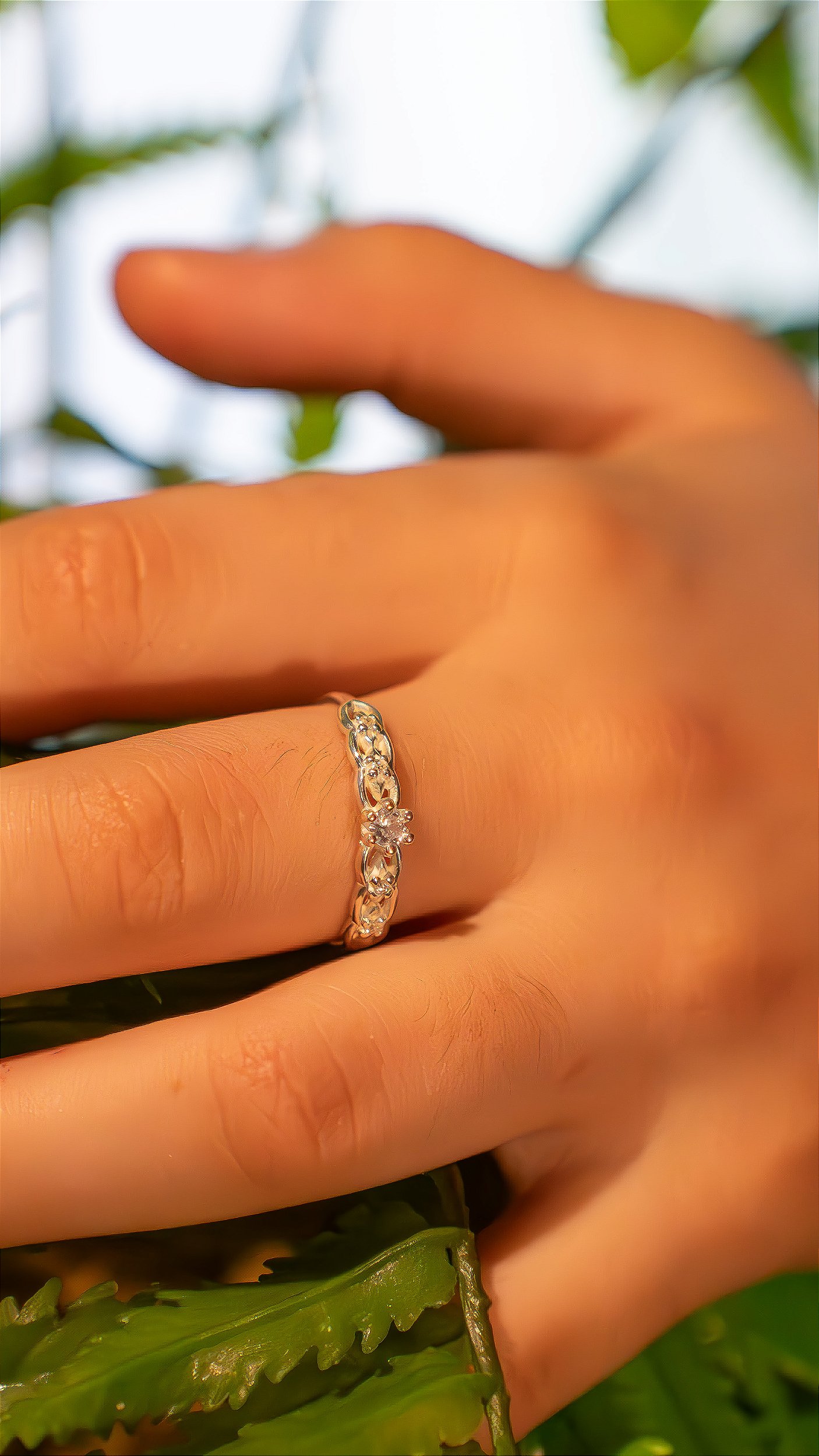 Anel Solitario com pedra de 3,5mm e detalhes de coração com Pedra de 1.25mm.