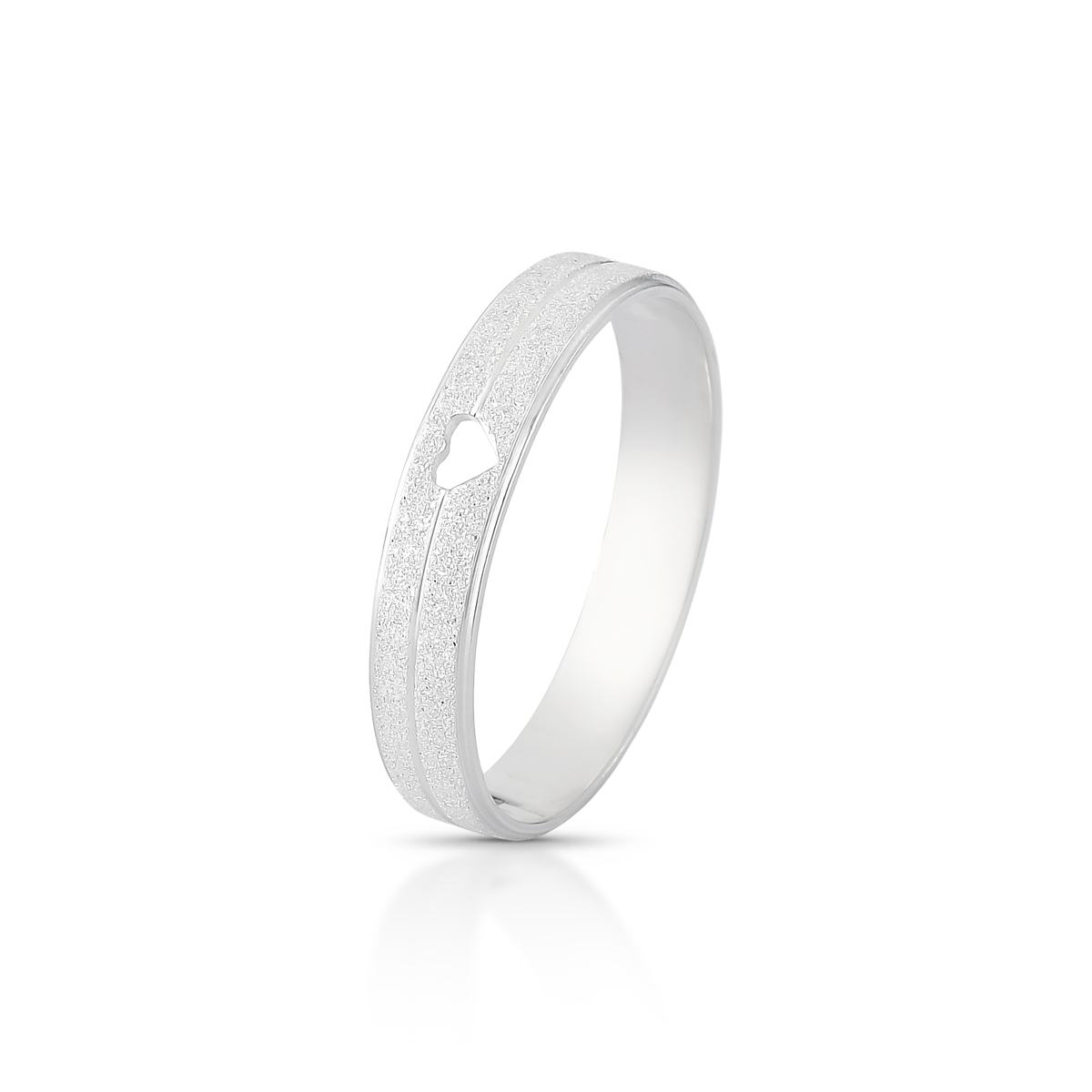 Aliança de Prata 925 semi anatômica. rebaixada nos cantos, com friso, com coração e diamantada.