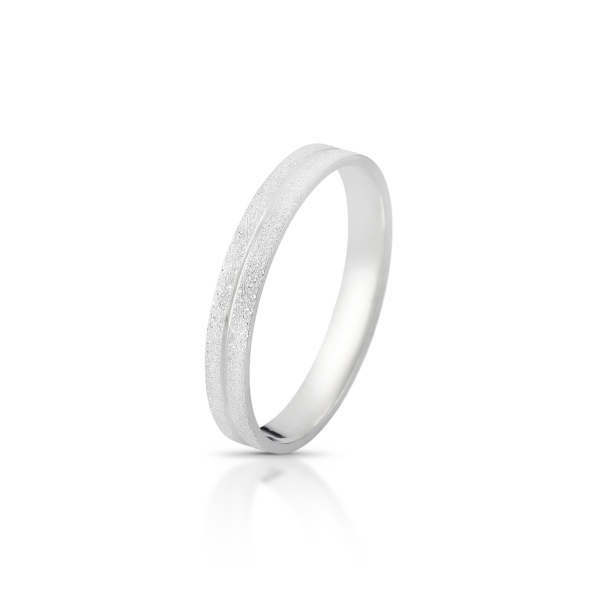 Aliança de Prata semi anatômica. reta com frizinho e diamantada.