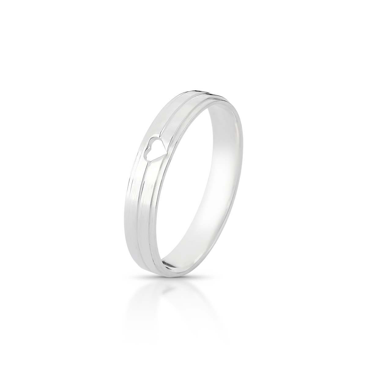 Aliança de prata 925 semi meia anatômica, com cantos rebaixados, com friso no meio,coração e acabamento polido