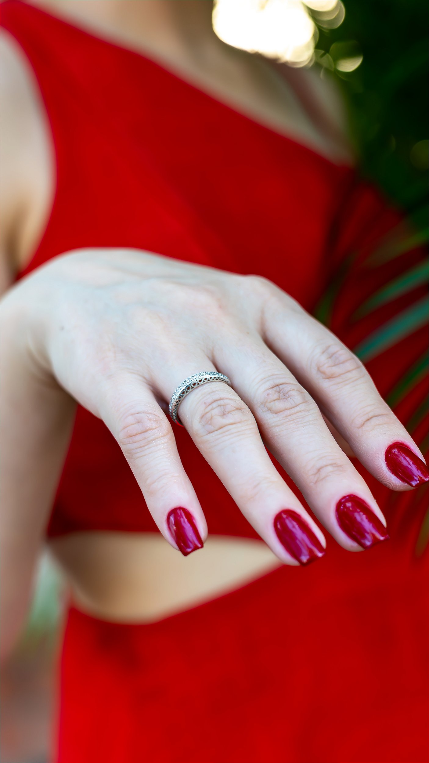 Aanel em prata 925 com pedras e detalhes de coração nas laterias.
